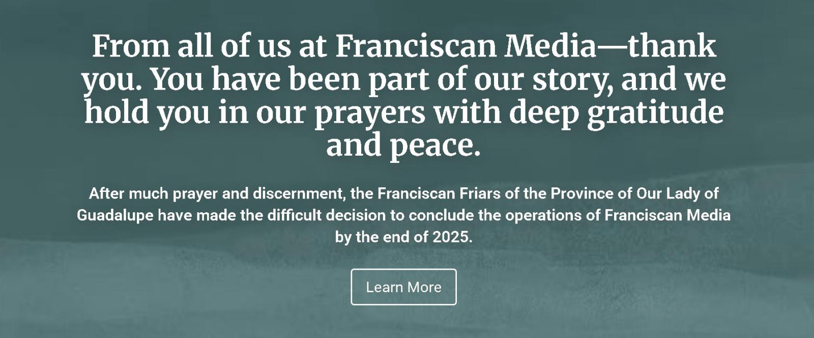 The Friars write: "Your contributions have been a blessing, helping us share the Gospel and the Franciscan spirit. It is because of this shared commitment—and despite the immense support we have received—that we now face a difficult reality. After much prayer, discernment, and heartfelt conversation, the Franciscan Friars of the Province of Our Lady of Guadalupe have reached the difficult decision to conclude the operations of its legacy ministry, Franciscan Media, by the end of 2025."